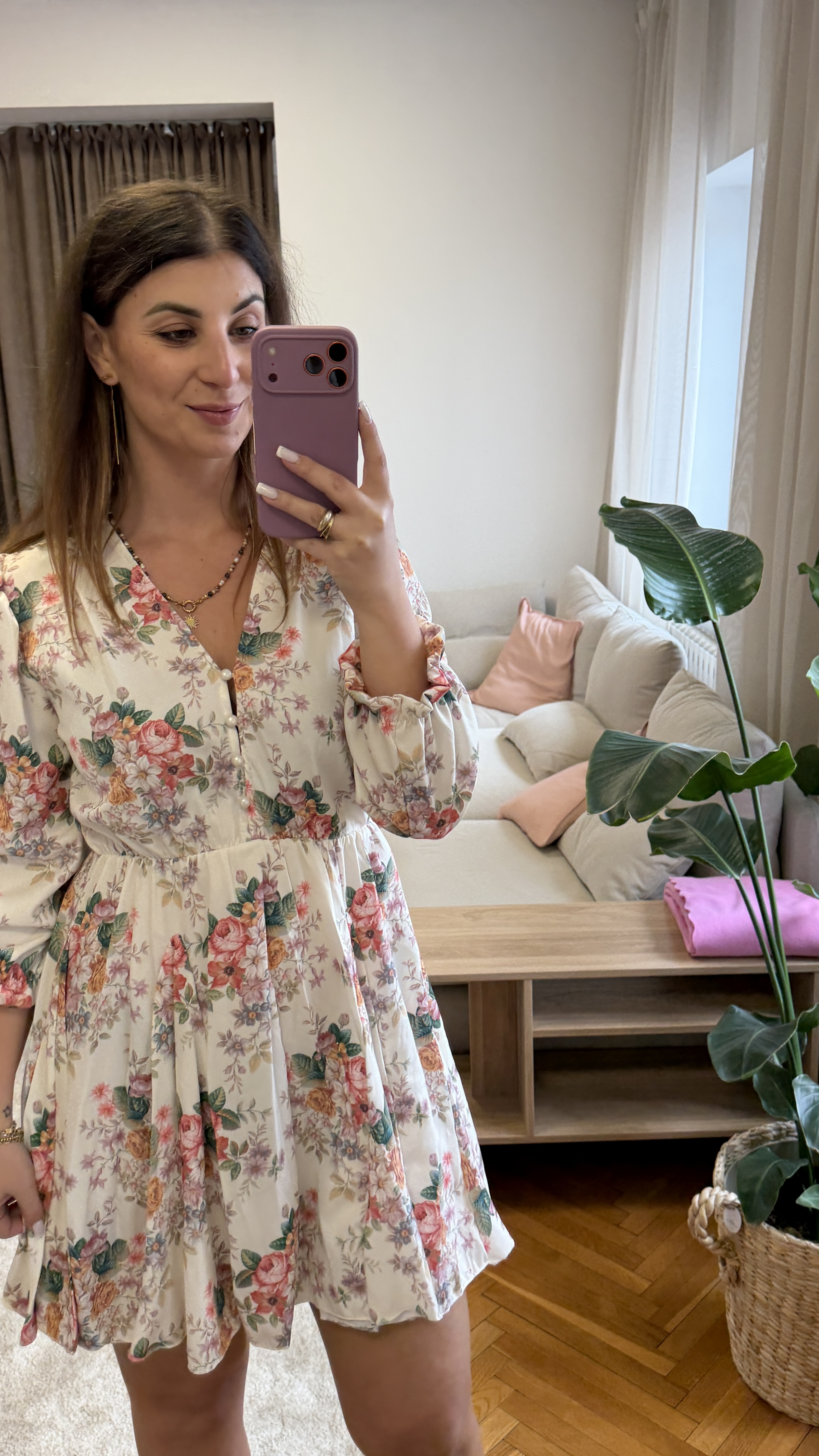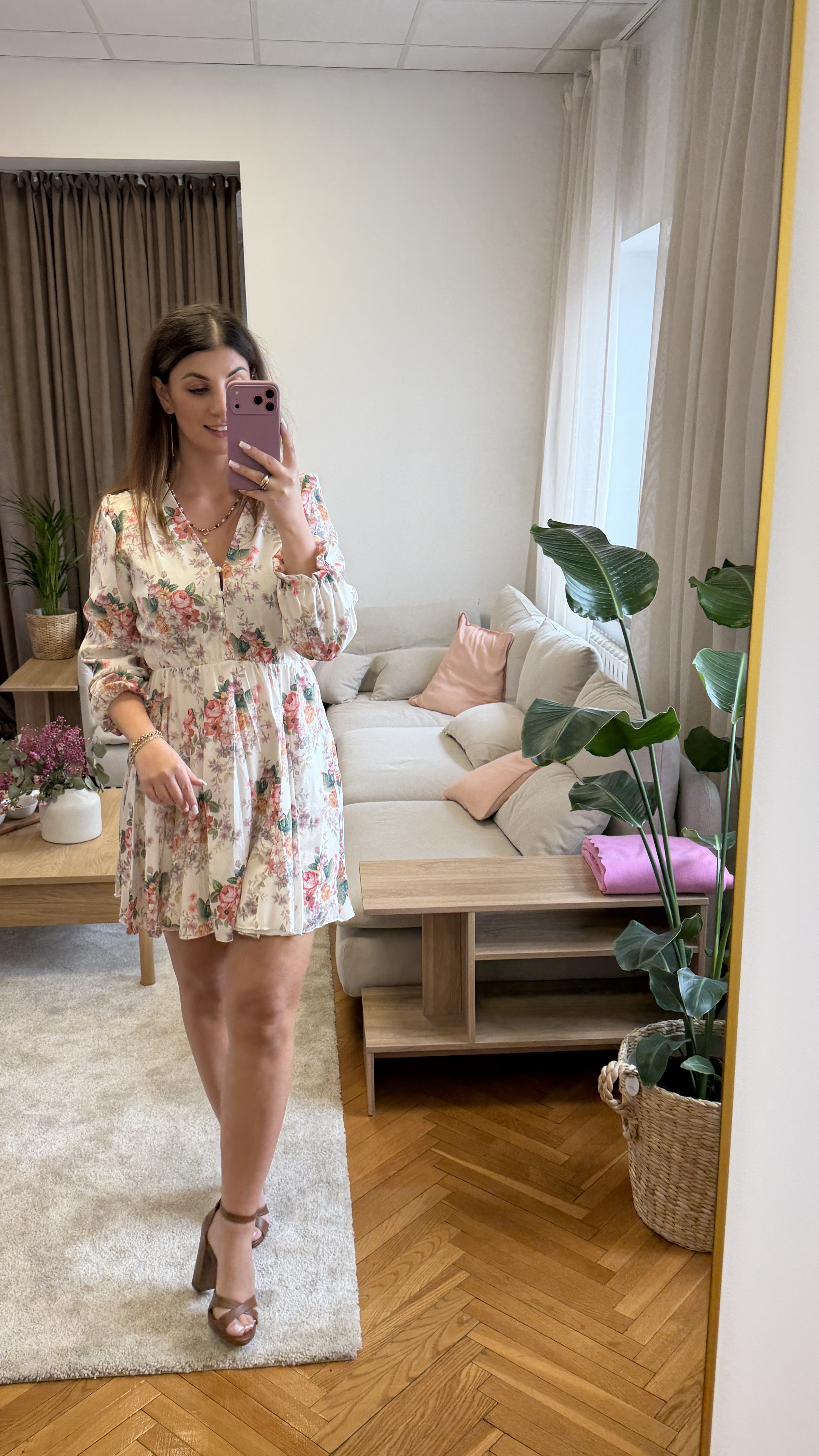 Livia – jasna w kwiaty sukienka mini o rozkloszowanym kroju